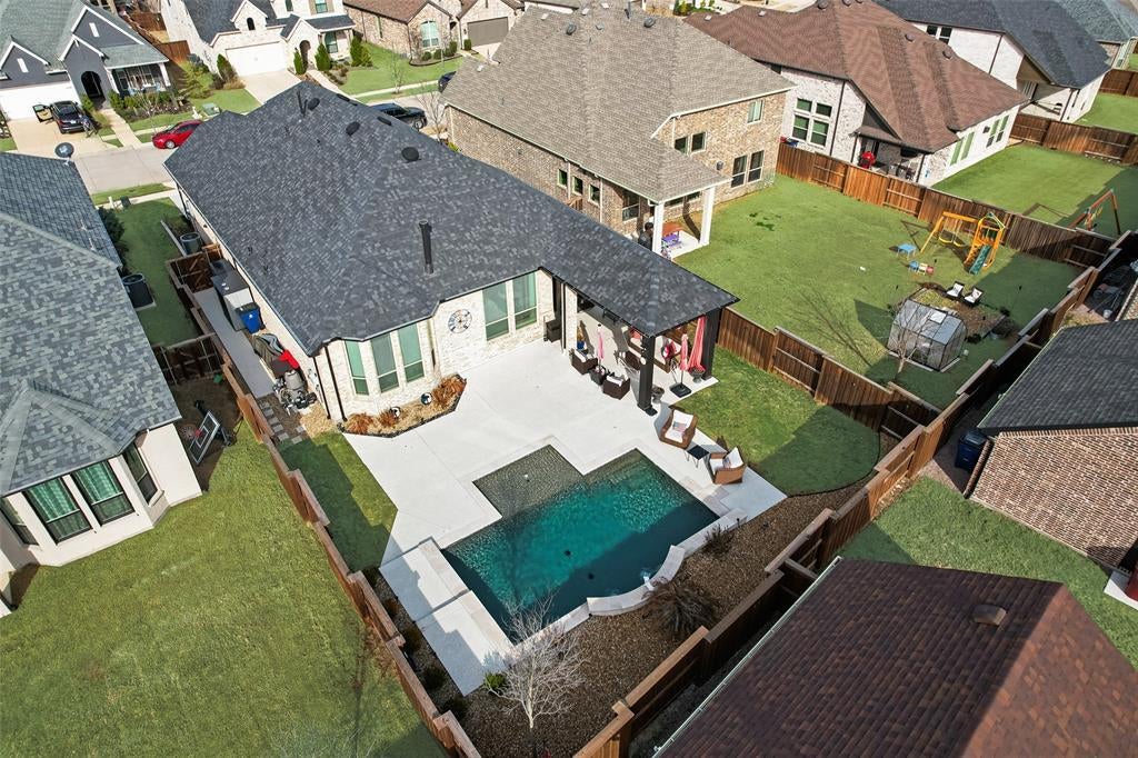 Start swimming now with this gorgeous almost *NEW* Highland home w over $100K plus in upgrades featuring a custom ** new pool**, and outdoor living area with extended patio and cool deck texture. **Level 2 EV charger in garage...North facing home with **grand entrance corridor **offers high end steel door with glass, galley wall, painted tray ceilings with light fixtures that gives the home a very upscale & spacious feel upon entering. One of Highland's most popular plans. This home has it all!! 3 bedrooms, 3 full baths & spacious media room with private study off the main entry. Numerous upgrades include: shiplap in entry, hallway, fireplace wall & tub surround, luxury vinyl plank flooring in primary bedroom & closet, and luxurious vessel tub in primary bath. Mantua offers a luxurious resort style neighborhood w community clubhouse, pool, and biking trails all within sought after VA ISD. Easy commute to Sherman or Dallas right off of Hwy 75 with nearby shopping just a few miles down 75.