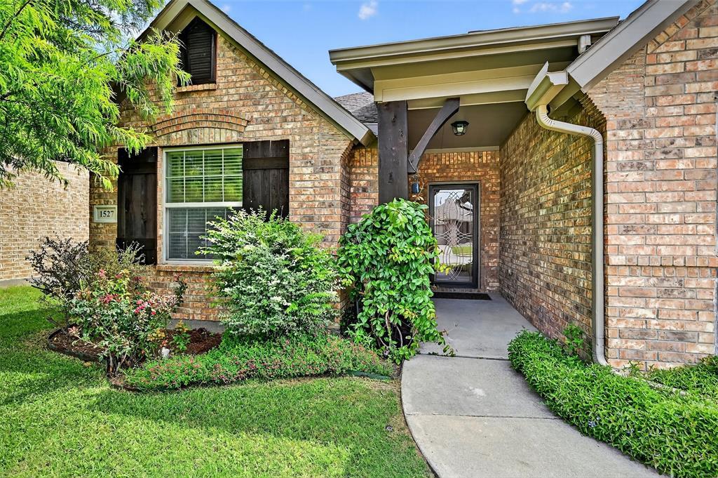 Welcome to this charming single-story brick home, perfectly situated in a serene neighborhood with a mature tree offering shade and character to the beautifully landscaped front yard. A covered front porch invites you into a spacious entryway that opens to a formal dining area—ideal for gatherings and special occasions. Designed with an open floor plan concept, the heart of the home features a warm and inviting kitchen complete with stunning wood cabinetry, a large center island, granite countertops, and a cozy eat-in dining area. Whether entertaining or enjoying a quiet night in, this layout offers both functionality and style. The expansive master suite is a true retreat, boasting a luxurious soaking tub, dual vanities, a walk-in shower, and a generous walk-in closet. Additional highlights include a large covered back patio—perfect for outdoor dining or relaxing—overlooking a peaceful greenbelt for added privacy and scenic views. Located within walking distance of the local elementary school, this home is also part of a vibrant community offering top-notch amenities, including a swimming pool, playground, and basketball court.
