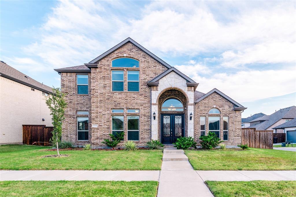 This stunning two-story home sits on a desirable corner lot, offering extra yard space and added privacy. The elegant arched entry with wrought-iron double doors opens to a grand foyer featuring soaring ceilings, wood flooring, and a sweeping staircase. The spacious living room offers abundant natural light and a floor to ceiling fireplace. The gourmet kitchen is a chef’s dream with crisp white cabinetry, a large island with seating, stainless steel appliances, a gas cooktop and a stylish backsplash, flowing seamlessly into a bright breakfast nook. A formal dining room with vaulted ceiling adds elegance for special gatherings. The master suite offers a tray ceiling and spa-like bath with soaking tub, frameless shower, dual vanities, and walk-in closet. A dedicated office and a second bedroom are also located on the main floor, providing flexibility for work and guests. Upstairs you’ll find two additional bedrooms, a spacious game room, and a dedicated media room with theater-style ambiance, perfect for entertainment and family fun. Epoxy Garage Flooring. NEW CARPET! A covered patio and fenced backyard complete this home, designed for both relaxation and gatherings. Ideally located in the sought-after city of Frisco, this home offers quick access to shopping, dining, entertainment, and top area attractions.